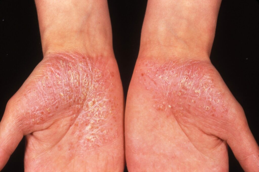 systemic signs like fever in more serious forms.
