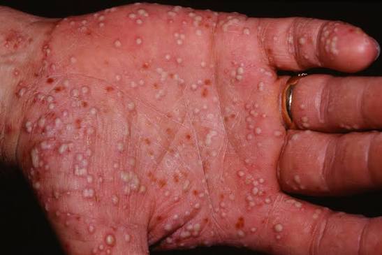 Clusters of pus-filled bumps,
